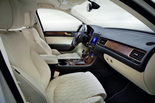 Кузовные шильдики также покрыты золотом, а кузов Touareg Gold Edition окрашен белой перламутровой краской, получившей название "Волшебное утро". О цене шикарной "золотой" машины не сообщается, так же как и о том, когда и на каких рынках новинка будет представлена в продаже.