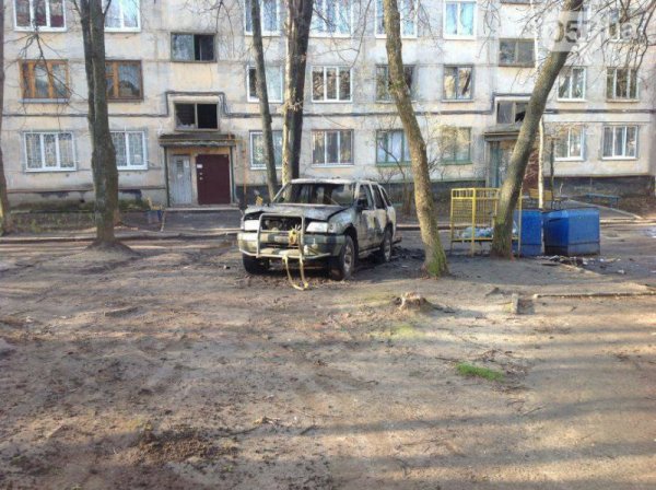 В Харькове ночью подорвали камуфлированный внедорожник. (Фото)