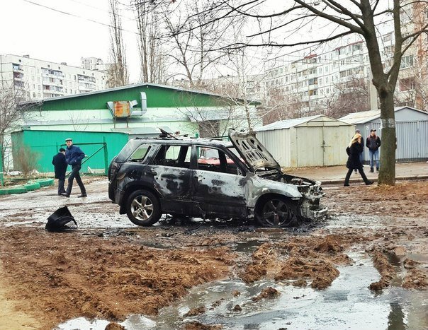 В Харькове возле здания суда сожгли джип адвоката. (Фото)