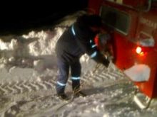 Немедленно к месту вызова было направлено дежурное отделение МЧС на автомобиле повышенной проходимости и трактор ДТ-75 на гусеничном ходу. Трактор расчищал снежные заносы, которые местами достигали высоты 2,5 м.