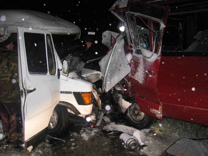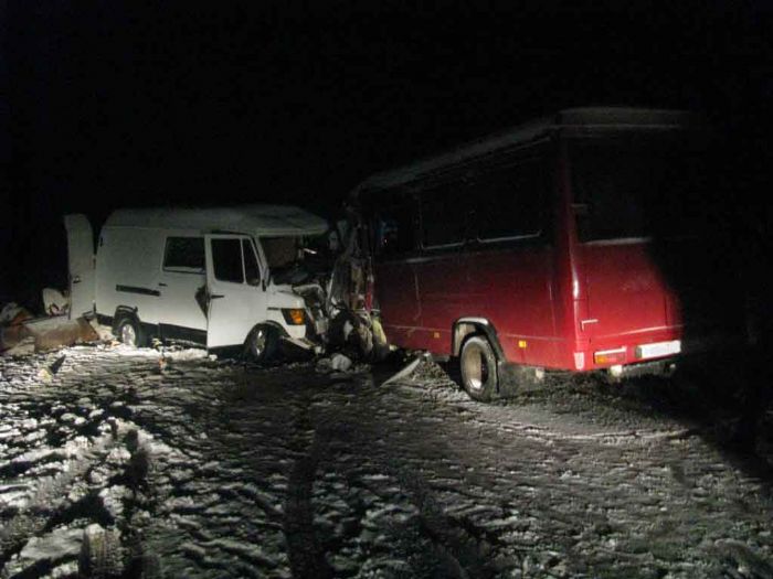 Вчера, в 20:30 минут, в Хмельницкой области на 56 км автодороги ''Новоград-Волынский - Староконстантинов'' водитель рейсового автобуса ''MERCEDES-BENZ 609'' не выбрал безопасную скорость, не справился с управлением и выехал на полосу встречного движения, где совершил столкновение с автомобилем ''MERCEDES-BENZ 310''.