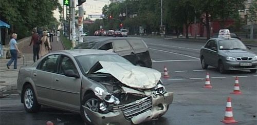 Chrysler двигался по Владимирской в сторону Горького. Со стороны бульвара Шевченко на перекресток в это время выехал Mitsubishi. Там-то автомобили и не разминулись, сообщает .