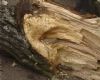 Женщина допускает, что ветвь оборвалась ночью, когда жильцы дома уже спали. Утром под подъездом ее ожидал такой себе сюрприз. На то, что осталось от респектабельного автомобиля, без слез смотреть нельзя. Владелица побитого авто сначала запаниковала, а затем позвонила к коммунальщикам, чтобы те оформили все, как следует на бумаге. Но сначала пришлось выслушать выводы коммунальных экспертов, говаривал дуб еще зеленый, и по какой причине отломалась ветвь - неизвестно. А если неизвестно, то и акт ничего составлять. В конце концов, документ сделали, но женщина удивляется такому безразличному отношению коммунальщиков к здешним жителям, которые, кстати, ежемесячно платят за квартиру и за то, чтобы в доме и во дворе все было в порядке.  Согласно договору об обслуживании, коммунальные службы должны обрезать деревья ежегодно. Но этого почему-то никто не делает. А под опасными деревьями гуляют и старые люди, и дети. В этот раз ветвь людям вреда не нанесла лишь потому, что случилось все ночью. Люди боятся, что однажды ветвь таки упадет кому-то из них просто на голову.
