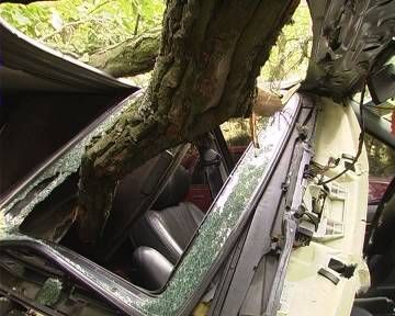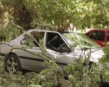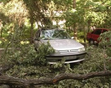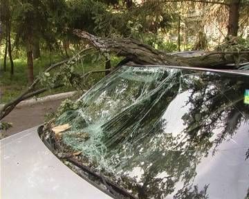 Огромная дубовая ветвь упала на автомобиль. Владелице шестьсот пятого Пежо теперь придется решать: продать машину, или найти средства на капитальный ремонт, сообщает .