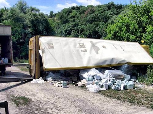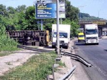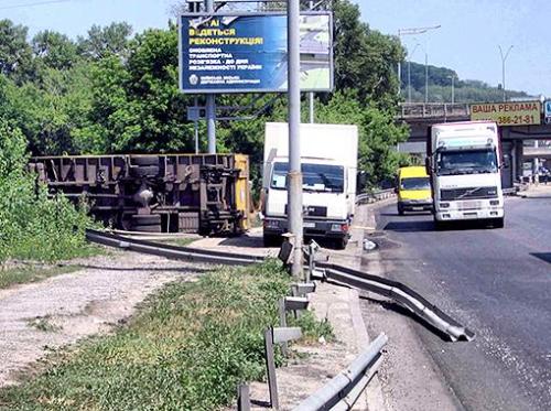 Это дорожно-транспортное происшествие произошло 24 июня на Столичном шоссе. Грузовик MAN, перевозивший минеральную воду, ехал со стороны проспекта Науки в направлении моста Патона, сообщает .