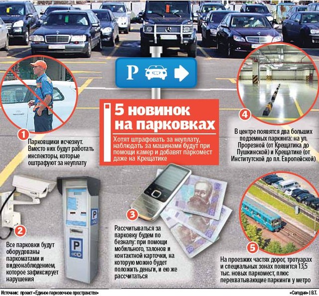 Сами же парковки тоже изменятся — парковщиков, к которым мы так привыкли, не будет, взамен поставят инспекторов. «Они должны будут контролировать оплату, а также смогут штрафовать тех, кто не рассчитался. Сумма штрафа будет решаться на законодательном уровне, поэтому о ней говорить рано», — говорит нам Солобаенко. Правда, неофициально говорят о 221 грн. Но зато теперь будут контролировать безопасность машин — на всех стоянках поставят камеры видеонаблюдения. А паркоматы — автоматы для уплаты стоянки — изменятся.