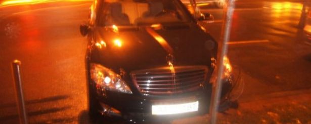 По предварительным данным, Mercedes-Benz S600 (2007 г.в.) двигаясь со стороны улицы Б. Хмельницкого в направлении улицы Л. Толстого проехал перекресток на красный сигнал светофора и столкнулся с автомобилем ГАИ (Mitsubishi Lancer), который двигался на зеленый сигнал со стороны площади Победы в направлении «Бессарабки». В результате столкновения пострадало два инспектора ГАИ. С ушибами и ЗЧМТ их госпитализировали медики «скорой».