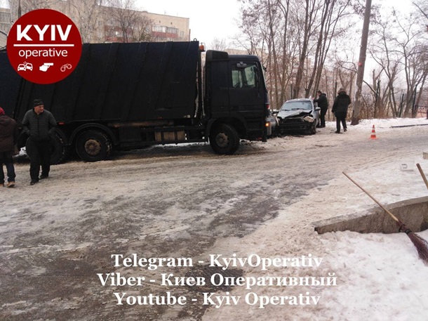 "На улице Лукьяновской 81, сегодня утром мусоровоз протаранил около 10 автомобилей. Как говорит водитель, он поднимался вверх по горке, было скользко и машину занесло", - говорится в сообщении.