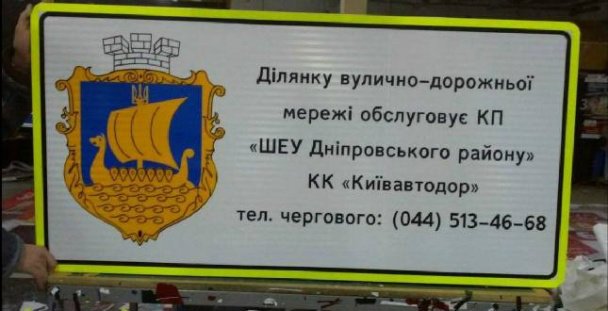 На киевских дорогах "Киевавтодор" начал устанавливать информационные знаки, которые будут сообщать о разграничении зон обслуживания улично-дорожной сети, сообщает .