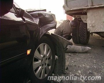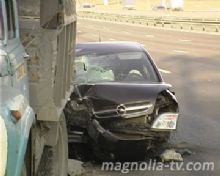 Но возникла неожиданная преграда - на обочине стоял ЗИЛ. Тормозить было некогда. Удар был такой силы, что тяжелый грузовик сдвинуло с места, а Опель рикошетом отбросило на бензовоз.В кабине легковушки кроме водителя были еще два пассажира. Никто из людей не пострадал.