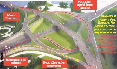 По трехуровневой современной развязке в форме кольца, которую возводят возле моста Патона в виде «турбины, уже можно ездить. «По сути, все съезды и заезды открыты и водители могут уже приспосабливаться. Ко Дню Победы все хотим завершить», - рассказывает нам глава «Киевавтодора» Георгий Глинский. Над Набережным и Надднепрянским шоссе построили путепроводы, а в насыпи под мостом Патона и бульваром Дружбы Народов сделали тоннели. И все это соединили в кольцо. А внутри кольца сделали так называемые «турбины» для совершения левых поворотов. Правда, новая развязка очень сложная и непривычная, и без хороших указателей кому и куда ехать с первого раза не понять.