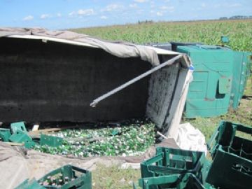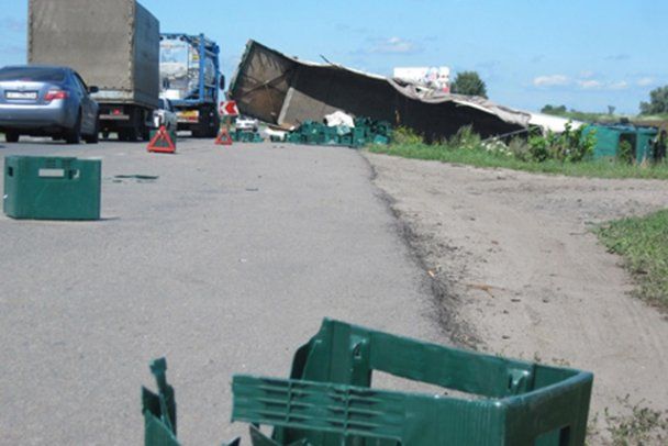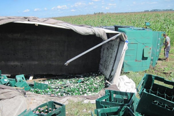 В минувшую субботу 23 июля на Окружной дороге при повороте на Малую Александровку перевернулся КамАЗ, груженый ящиками с пивом, в которых находилось порядка 1000 бутылок. При этом, грузовик лежал на месте ДТП вплоть до вечера воскресенья.