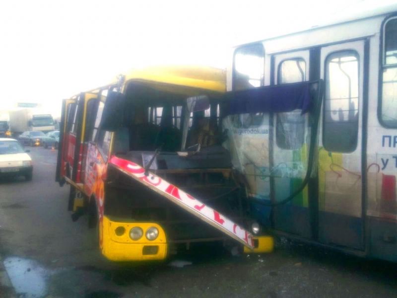 Сегодня, в 6 часов 40 минут, в Киеве на проспекте Ватутина (Днепровский район) водитель автобуса ''Богдан'' столкнулся с троллейбусом, который двигался впереди. По предварительным данным водитель маршрутного такси не придерживался безопасной дистанции движения, сообщает .