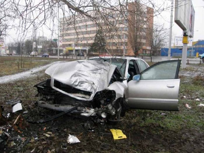 15 января, примерно в 6 часов утра, в Деснянском районе Киева на проспекте Гагарина водитель автомобиля Audi A6 совершил наезд на дерево.