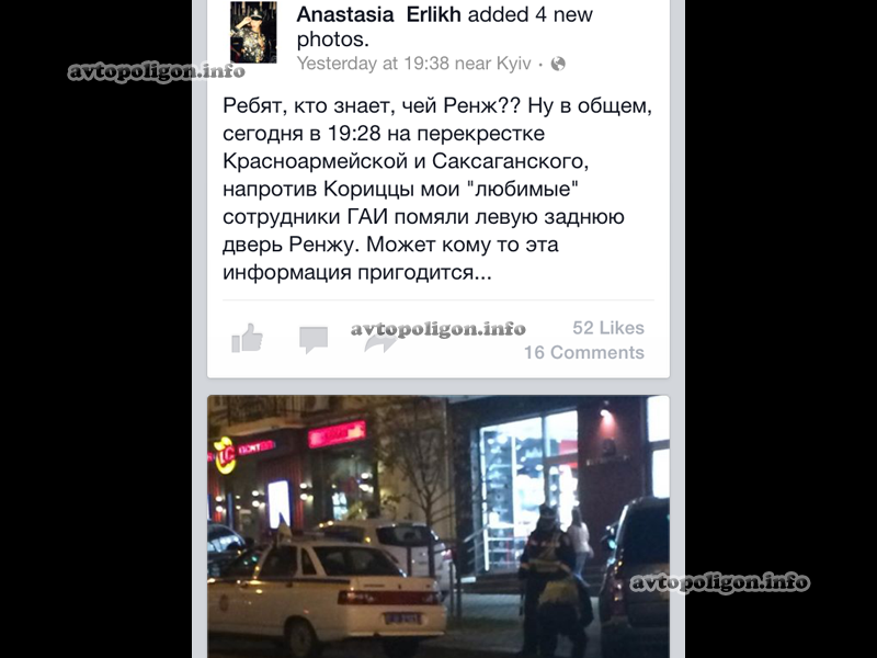 Ребят, кто знает, чей Ренж?? Ну в общем, в 19.28 на перекрестке Красноармейской и Саксаганского, напротив Корицы мои "любимые" сотрудники ГАИ помяли левую заднюю дверь Ренжу. Может кому-то эта информация пригодится..."