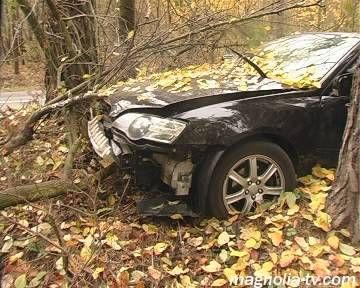 На пятом километре дороги, которая соединяет Броварское шоссе с селом Зазимье, автомобиль Subaru вынесло в лесополосу, сообщает .