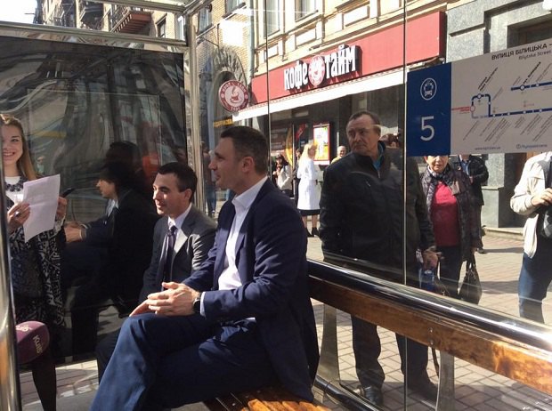 Мэр Киева Виталий Кличко принял участие в презентации "умной" смарт-остановки общественного транспорта.