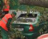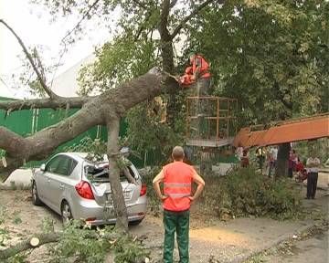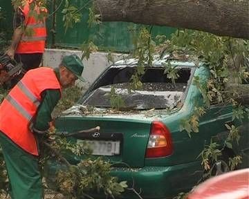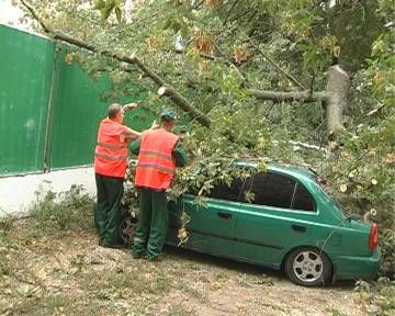Водитель Kia услышала звук сигнализации и поспешила к своему авто. Сначала женщина подумала, что ее машину грабят, но увидела картину не лучше, а скорее наоборот. Водитель Hyundai тоже был не в восторге от такого зрелища. Владельцам поврежденных автомобилей придется выложить кругленькую сумму на ремонт. Надеемся, страховые компании возместят убытки владелицам автомобилей, но такого досадного случая можно было бы избежать. Работники коммунального хозяйства не открещиваются от того, что дерево было действительно старое и больное. По предварительным подсчетам специалистов, огромная ветвь, упавшая на машины, весит около тонны. Однако почему его вовремя не спилили - вопрос остается открытым.В Киеве ветка старого дерева повредила 3 машины