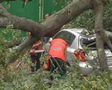 В Киеве, по ул. Кравченка упавшая ветка старого ясеня повредила сразу три автомобиля: Nissan, Hyundai и Kia, сообщает .