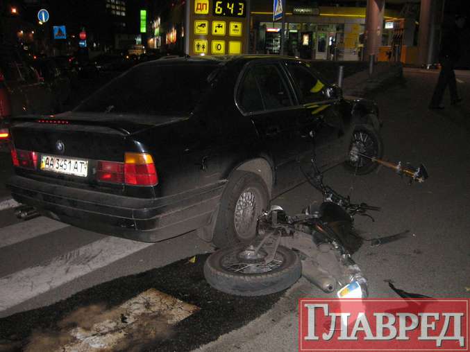 В Киеве возле АЗС на ул.Глубочицкой BMW травмировал мотоциклиста. (Фото)