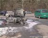 На Броварском проспекте загорелся Mercedes. По словам водителя, он заправил баллон газом и отъехал от заправки на метров 10, сообщает .