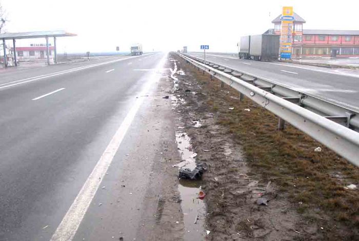 2 марта около 9:50 в Кировоградской области на 236 км. автодороги Киев - Одесса вблизи с. Синьки водитель автомобиля DAF ТЕ95XF с полуприцепом, житель Ивано-Франковской области 1965 г.р., отъезжая от АЗС ''Ятрань'', не уступил дорогу и столкнулся с автомобилем Toyota Corolla, который двигался по главной дороге.