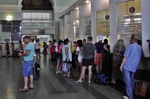 По словам начальника отдела вокзалов Приднепровской железной дороги Ивана Леводянского многие просто покупают билеты заранее: «Пассажиры стали грамотнее, сразу покупают билеты в оба конца. И мы заинтересованны, чтобы состав не шел пустым обратно. На сегодняшний день есть билеты на все направления. Пока пассажиры все заезжают в Симферополь, вывоз начнется к концу сезона. У касс стоят человек сорок, когда в 10 раз больше уже стоят ждут поезда. На сегодня уже перевезли 1,4 миллиона пассажиров в Крым, выехало обратно 1,1 миллиона человек. По сравнению с прошлым годом пассажиров стало больше примерно на 40 тысяч. Цены на все направления не менялись с прошлого года. Видя ситуацию, что на Львов мало три поезда, добавили еще один, своими составами. С 15 июля из Симферополя отправляется поезд №296, он будет забирать людей в Днепропетровске, Львове оттуда на свою конечную станцию Черновцы. Тот же путь он будет совершать в обратном направлении. В этом месяце он совершит шесть рейсов, в августе четыре, а дальше посмотрим на его популярность».