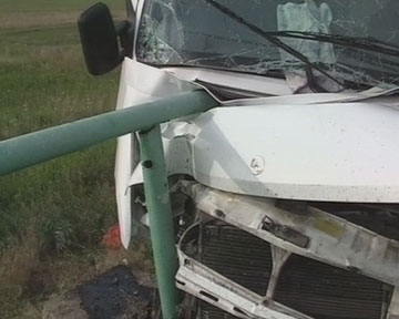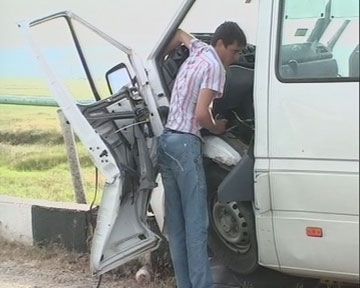 На 6-м километре трассы Белогорск-Золотое Поле возле села Мичурино водитель микроавтобуса Mercedes-Benz SPRINT (маршрутное такси Советское - Симферополь) не справился с управлением и совершил столкновение с бетонным ограждением на обочине дороги.