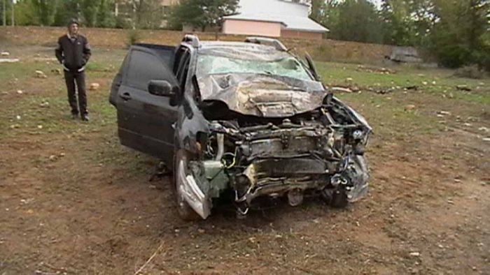 6 октября, в 02:00 в АР Крым в поселке Первомайское на перекрестке улиц Школьной и Ленина, водитель автомобиля MITSUBISHI OUTLANDER, сотрудник Госавтоинспекции, на закругленном участке дороги не справился с управлением, выехал за пределы проезжей части и ударился о каменную ограду.