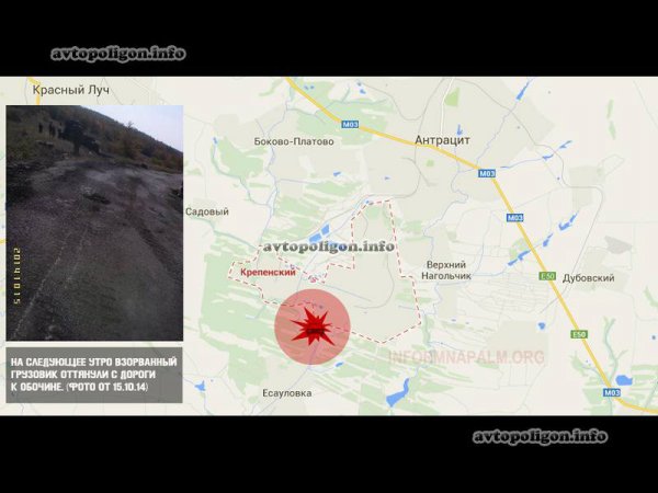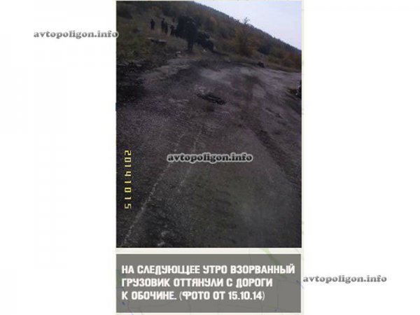 На видео, которое было сделано 15 октября, видно, что возле грузовика, который уже оттянули к обочине, находится группа боевиков. На видео, которое было передано одним из участников инцидента, при условии полной анонимности, видно как пылает после взрыва грузовик и слышны голоса боевиков.