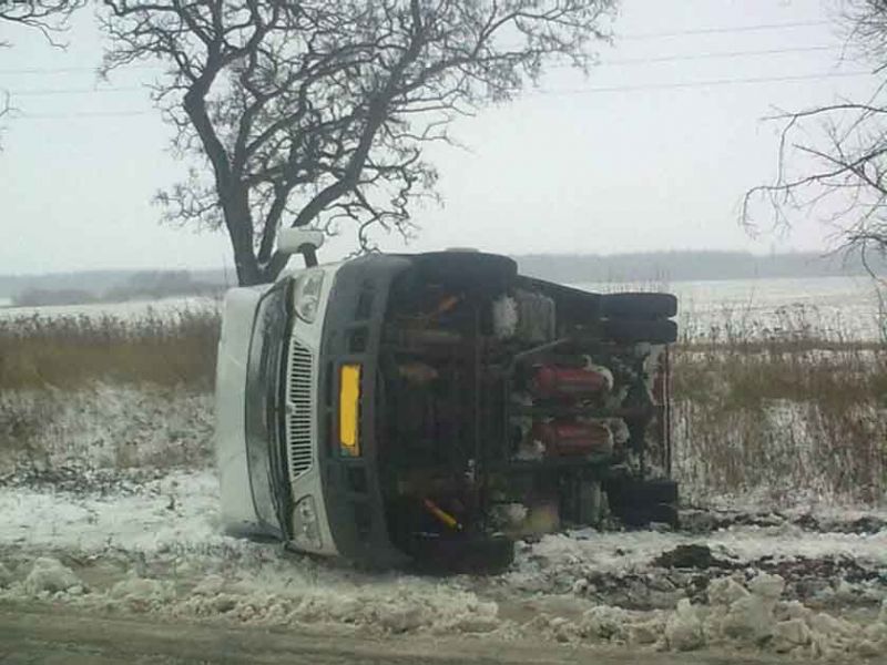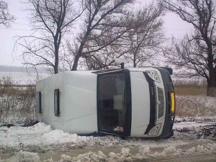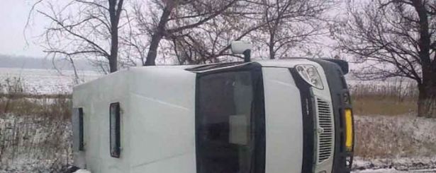 Вчера, в 12 часов, в Луганской области на 25 км автодороги ''Старобельск - Донецк'', водитель микроавтобуса не выбрал безопасную скорость движения, не справился с управлением, выехал за пределы проезжей части и перевернулся.
