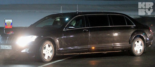 - На чем же поедет Путин? - гадали журналисты, а самолет российского лидера на взлетно-посадочной полосе все не появлялся. И тут на летное поле выехал кортеж, в составе которого был еще один Mercedes Pullman - такой же, как теперь у Лукашенко, только чуть старше возрастом. На лимузине были российские номера. На этом лимузине ездил Дмитрий Медведев, когда был президентом России.