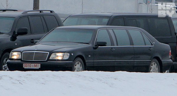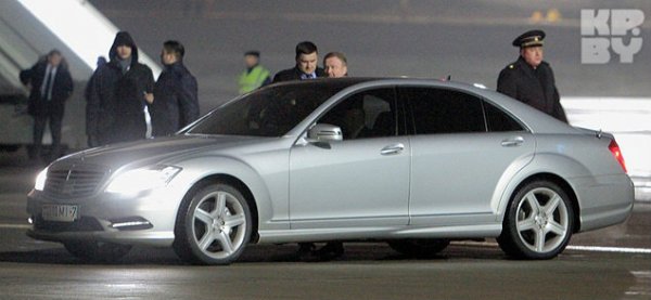 Но самыми роскошными автомобилями, приехавшими в аэропорт, были два длинных лимузина Mercedes с белорусскими номерами. Лимузин постарше сделан на базе знаменитого "шестисотого"*. На этом лимузине раньше ездил президент Беларуси. Второй лимузин - Mercedes Pullman в последнем кузове - это нынешняя самая представительская машина Лукашенко**.