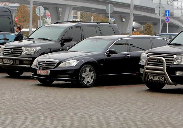 Кортежи, которые должны были встречать гостей, стали съезжаться в национальный аэропорт "Минск" еще за несколько часов до прилета "первых бортов". Тут можно было увидеть самые разные автомобили. Во-первых, это посольские машины - легковые и микроавтобусы. Во-вторых, одинаковые, как на подбор, черные "Мерседесы" S500L из так называемого "совминовского" гаража (ныне это АГУ "Белтрансспецавто" управделами президента). В-третьих, автомобили охраны - внедорожники Toyota Land Cruiser с министерскими номерами. Наконец, автомобили из службы безопасности президента - тонированные микроавтобусы и "Лэндкрузеры".