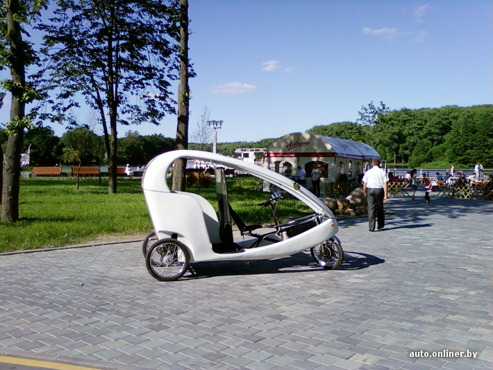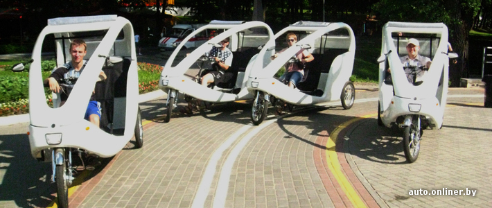С начала июня в Минске заработало экотакси. Пока на электрических трициклах желающих катают только по велодорожке вдоль Свислочи. Но руководство компании планирует в будущем возить пассажиров и по улицам города, сообщает .