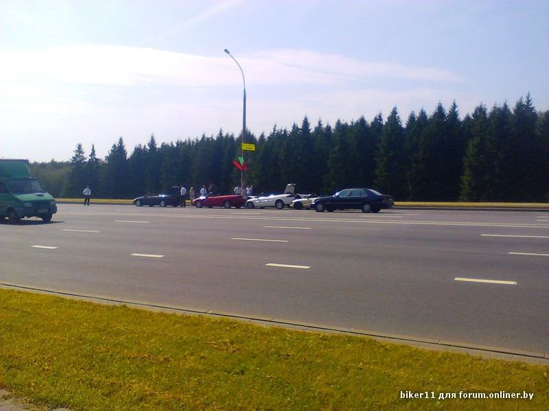 Вот что сообщил пользователь форума, зарегистрированный под ником BullBash1 (особенности авторской орфографии и пунктуации сохранены): «Где-то полчаса назад проезжал по Независимости (почти на выезде из города, около военакадемии) наблюдал интересную картинку: на втречке у обочины стояли в ряд 4 Хруслера-кабриолета. Причем последний, остановившись, влез своим передом под ( . ) третьего, видать не успел оттормозиться. Третий, возможно, тюкнул второго».