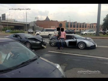 В Москве (Россия), в Лужниках не совсем удачно прошла "встреча" владельцев люксовых автомобилей, а именно, водителя супекара Aston Martin и гиперкара Bugatti Veyron, сообщает .