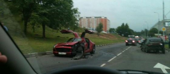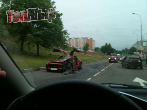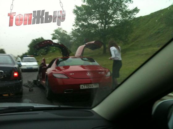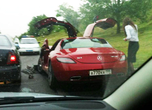 Эта модель только-только появилась на дорогах СНГ, а в России ее уже ''обновили'' - новейший Mercedes SLS AMG побывал в ДТП с участием ВАЗ 2112, сообщает .