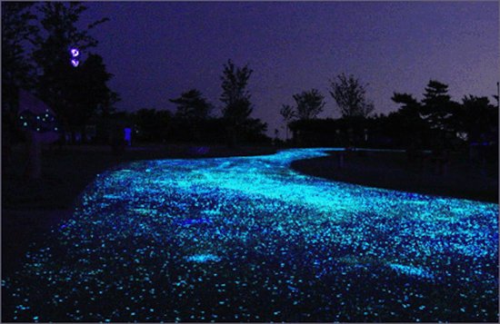 В нидерландском городе Осса появилась дорога, которая светится в темноте. Добиться такого эффекта удалось с помощью уникального люминисцентного покрытия разметки. Дорога заряжается от солнечной энергии днем и этого ей хватает, чтобы разметка светилась всю ночь.
