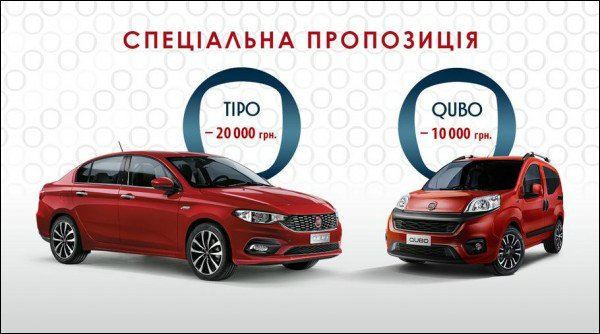 Компания «НИКО Диамант» делает выгодное предложение на модели 2016 года выпуска. На автомобиль Fiat Tipo экономия составляет 20 000 грн., на Fiat Qubo – 10 000 грн.