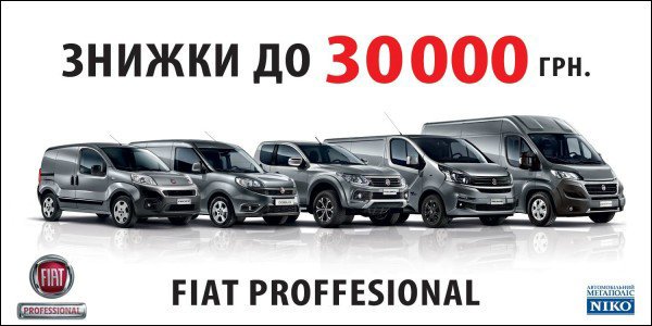 «НИКО Диамант», официальный дилер Fiat в Киеве и Киевской области, сообщает о специальном предложении в апреле на модели Fiat Professional - скидки до 30 000 грн..