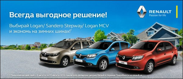 «НИКО Прайм Мегаполис», официальный дилер Renault в Киеве и Киевской области, сообщает о программе «Авто от Renault – всегда выгодное предложение*», которая продлится с 8 по 31 августа 2016 года..
