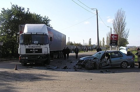 39-летний водитель автомобиля MAN-18 с полуприцепом ЛАГ-0339, поворачивая с улицы Знаменской налево, в сторону ООО «Сандора», не удостоверился в безопасности своего маневра и врезался в автомобиль Mitsubishi Lancer, который двигался во встречном направлении. В результате столкновения в грузовике повреждено левое переднее колесо, крыло и бампер. А у Mitsubishi Lancer полностью разбило переднюю часть.