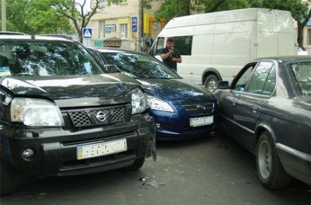 12 июня на пересечении улиц Московская и Чкалова города Николаева не смогли разъехаться сразу 4 автомобиля: внедорожник Nissan, Kia, BMW и ВАЗ.