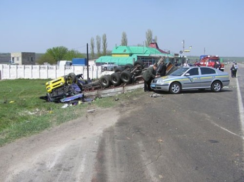 Водитель автомобиля MAN-18463, 46-летний житель Львова, двигаясь в направлении города Новая Одесса, не выбрал безопасную скорость движения, не справился с управлением, в следствие чего автомобиль занесло на полосу встречного движения, а потом грузовик перевернулся в кювет.