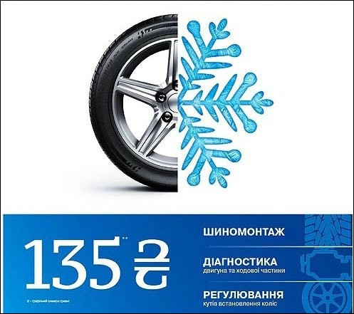 - Шиномонтаж от 135 гривен с НДС (в зависимости от диаметра);