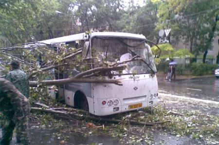 В субботу, 13 сентября, 15-метровый тополь упал на маршрутное такси №146, которое двигалось по проспекту Шевченко в Одессе, сообщает .