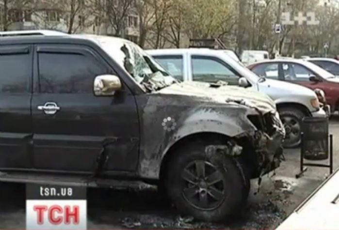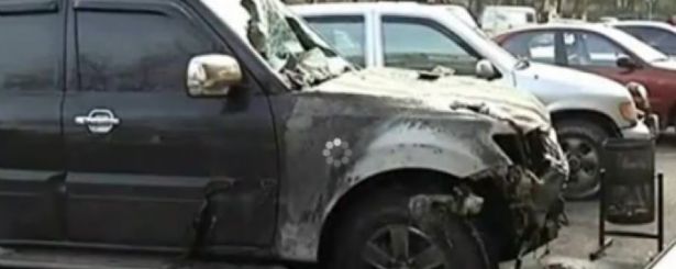 Взрыв произошел на парковке возле супермаркета около 3 часов ночи 11 ноября. Камеры видеонаблюдения магазина зафиксировали двух мужчин, которые подложили взрывчатку под колесо и облили джип бензином.