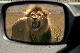 "Животное гонялось за машинам точно так же, как это делают собаки, пытаясь нападать на них", - рассказал один из очевидцев. "Лев пробегал около 3-5 метров и возвращался обратно".