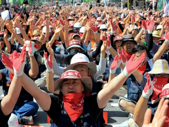 Таким образом люди выразили свой протест против сокращений и реструктуризации в индустрии.
